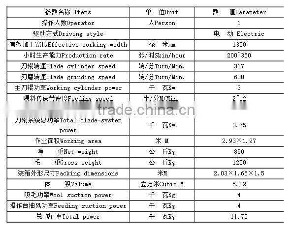 This machine is well used in the lambskin production processing, especially in thr production of double-face. It cuts the wool at very beginning for the skins with short wool, it is well used for raw lambskins, wet or dry.