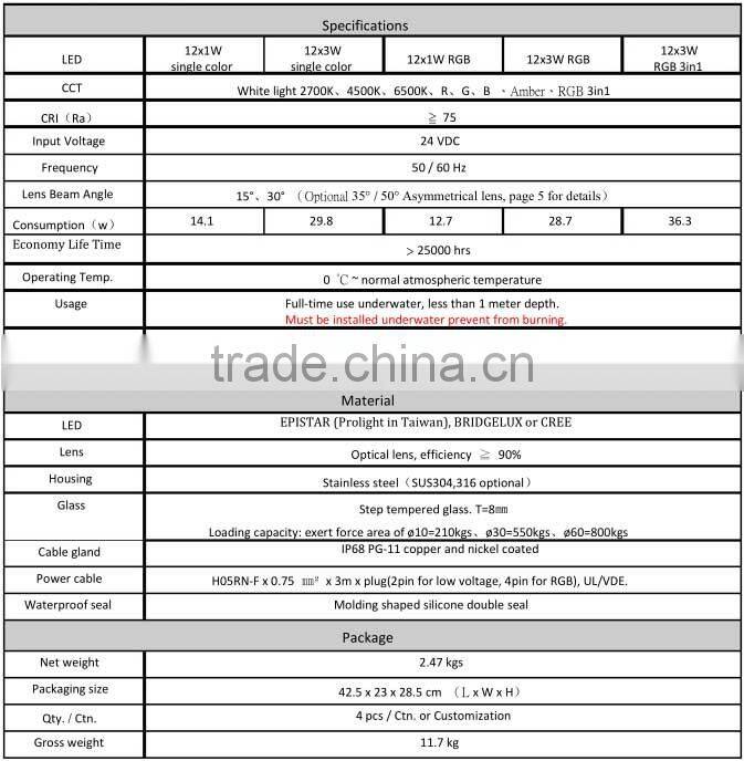 Home > Products > Other lighting > Hot Sale High Power 12x3w RGB Underwater Swimming Pool Lamp Led Pool Ip68
