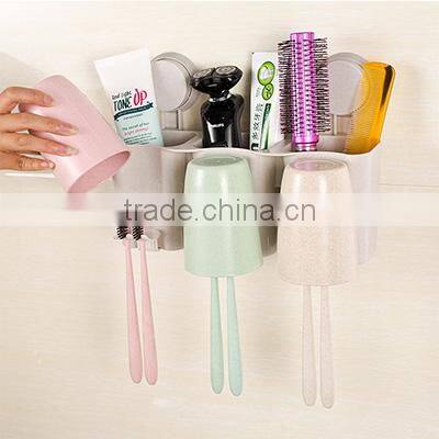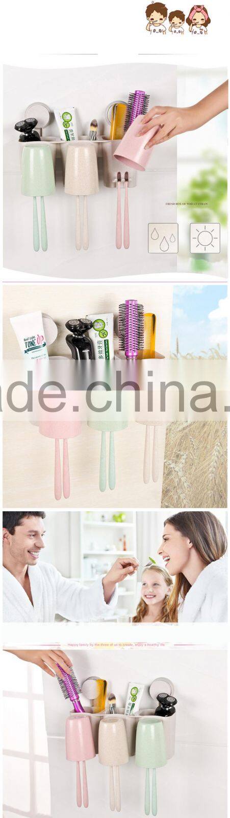 2016 Wheat Stalks Style Suction Cup 3 Tooth Mug+6 Toothbrush Holder Toothpaste Hanger Storage Set