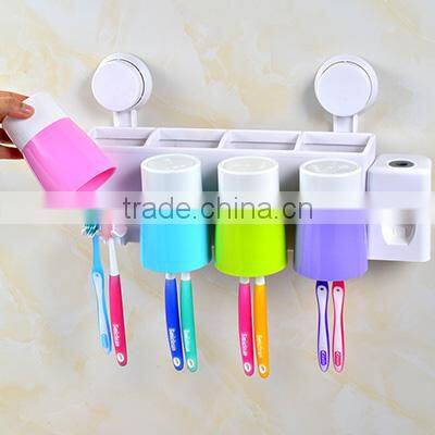 Promotional ABS PS Wall-Suction Creative 8 Toothbrush Holder 4 Cups Hanger Toothpaste Dispenser