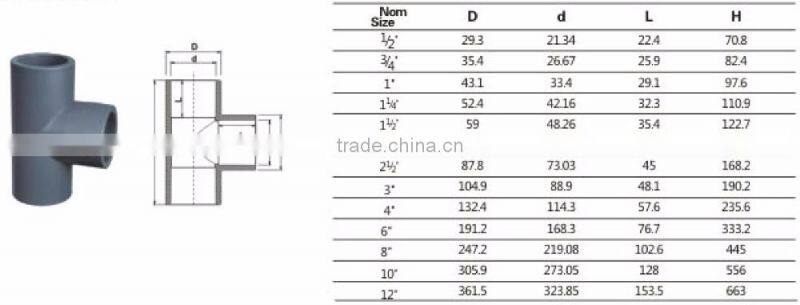 CPVC Fire Sprinkler System Industry Pipe and Fittings Tee ASTM F439 SCH80 for Water
