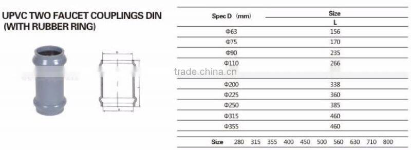 Plastic PVC Pressure Regular Coupling With Rubber Ring Joint for Water Supply