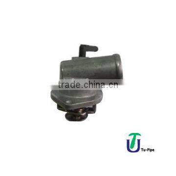 The thermostat is mainly the wax type thermostat, by its internal paraffin by thermal expansion and contraction principle to control the cooling fluid circulation way of. When the cooling temperature is lower than the prescribed value, the thermostat sense temperature in refined paraffin wax is solid, the thermostat valve under the action of the spring off the channel between the engine and radiator, cooling fluid through the pump returns to the engine, within the engine cycle. When the coolant temperature reaches the set value, paraffin began to melt gradually become liquid, the volume increases and pressure rubber tube, so that the contraction, the contraction of the push rod to the upward thrust, push rod, the valve down reverse thrust open the valve in the rubber pipe. When the coolant through the radiator and the thermostat valve after the pump back to the engine, proceed big circulation. Most of the thermostat is arranged in the cylinder head out of the water pipe, such advantages are simple structure, easy to discharge the bubbles in the cooling system, the disadvantage is that the thermostat at work often open and close, resulting in oscillation phenomenon.