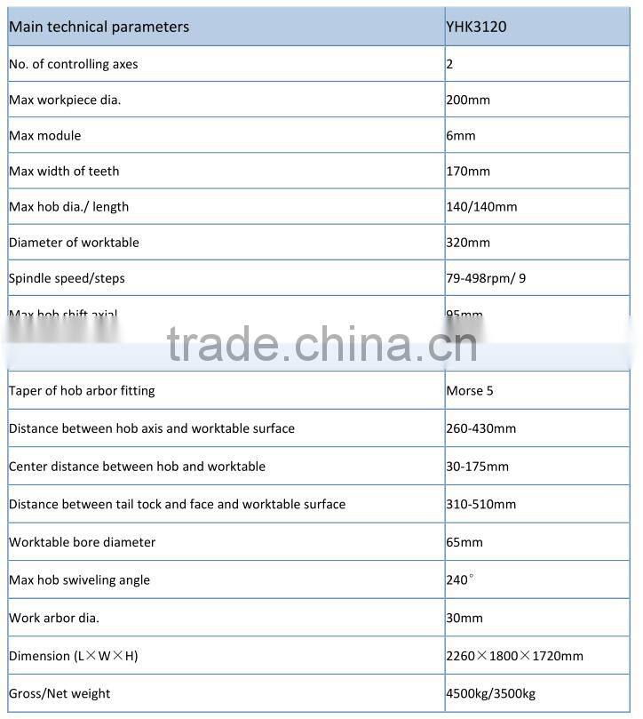 Home > Products > Gear hobbing machine and Thread rolling machine > YHK3120 CNC Gear Hobbing Machine On Sale