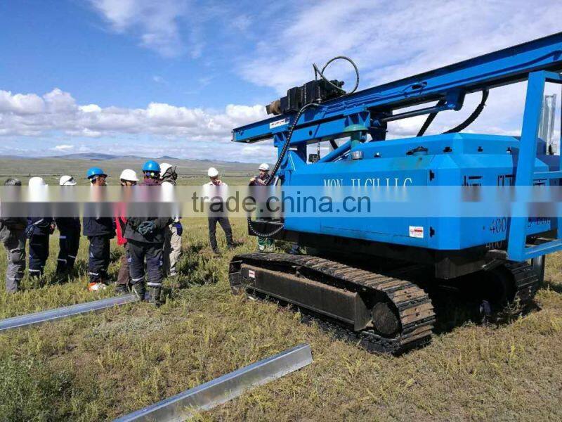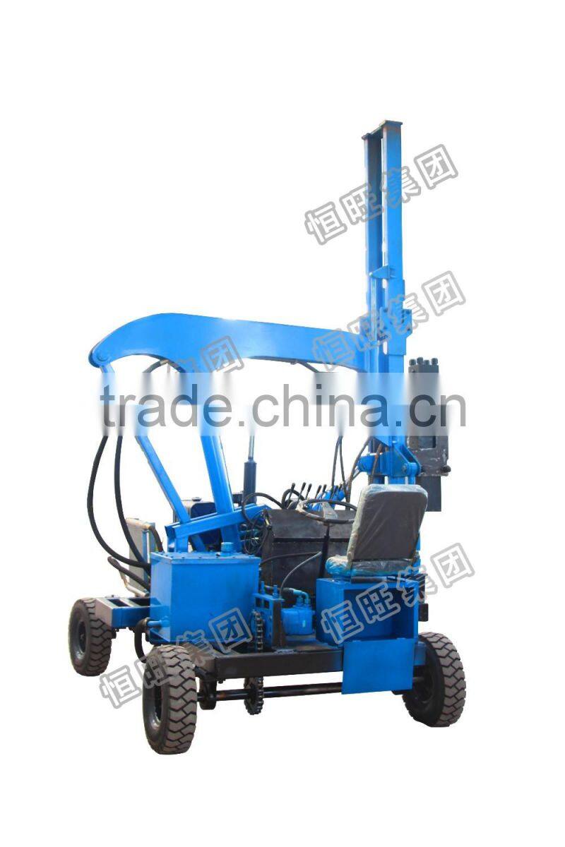 The hydraulic pile driver is a kind of multifunctional highway guardrail pile construction machinery, with different configuration it can accomplish many functions, such as piling, pile extracting, and drilling on the stable layer of road before piling