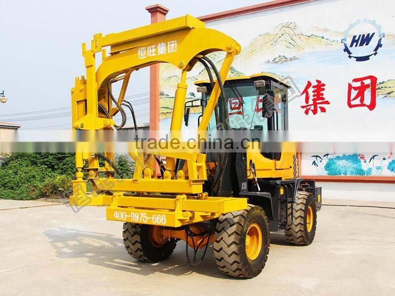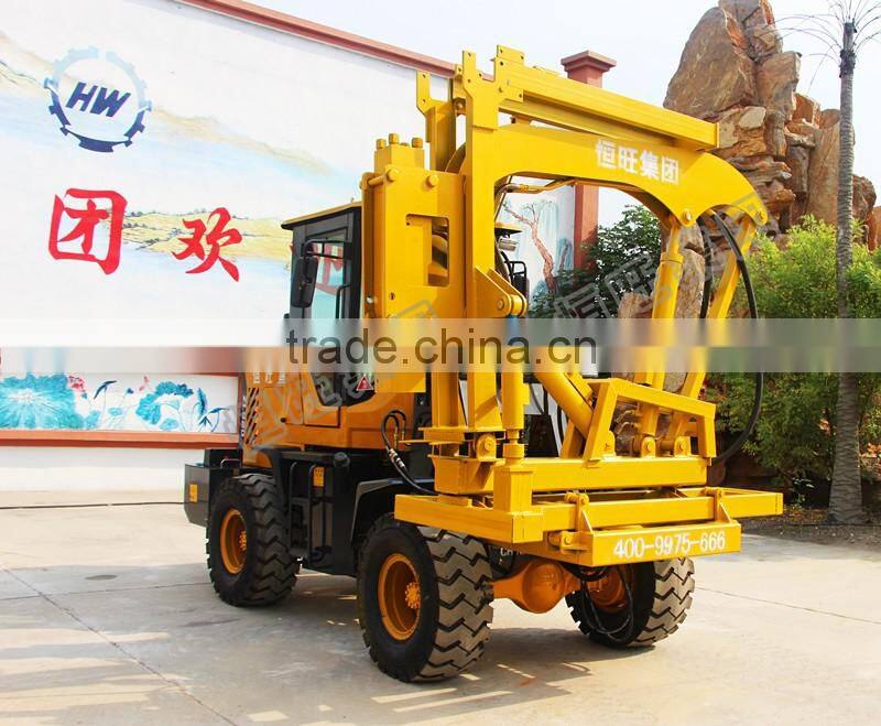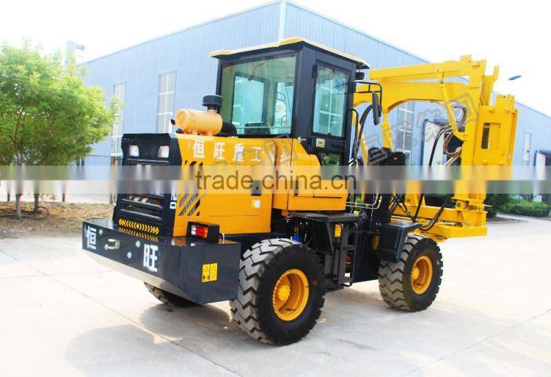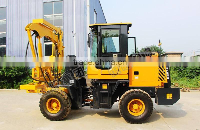 Load Type Wheeled Guardrail Pile Driver is a kind of multifunctional pile construction machinery, mainly used for solar plant construction and highway guardrail pile construction .With different configuration it can accomplish many functions, such as piling, pile extracting, and drilling on the stable layer of road before piling.