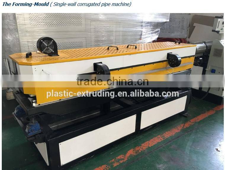 Single-wall corrugated pipe machine developed by our company adopts gears to run modules and templates so as to realize water circulating cooling and air cooling of the products, which ensures high-speed molding, even corrugation, smooth inner and outer pipe wall. These corrugated pipes are especially used in wires conduit pipe.It is mainly for the production of raw materials to PVC.PP.PE small diameter single wall corrugated pipe. Die by the corresponding forming a homogeneous single-wallcorrugated bellows products. Threading pipe for wire and cable, washing machinedrains, vacuum cleaners, ventilation pipe, prestressed concrete special tubes.