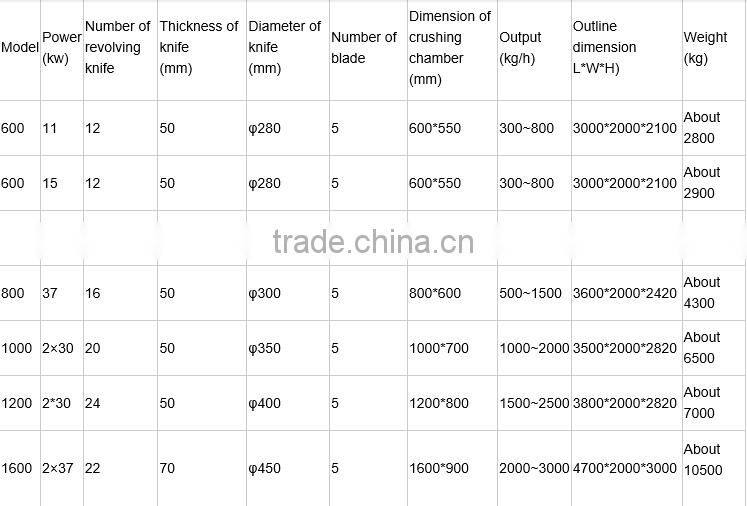 High output 100-3000kg/h plastic crusher used for sale