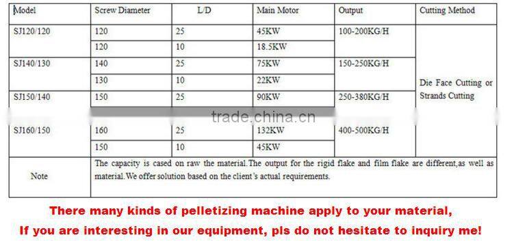 There noodle strand type and water ring type pelletizing line,recycling PP PE HDPE LDPE film bags, milk flakes, lumps, no matter soft materials or rigid materials, any other profile ,make them into pellets.