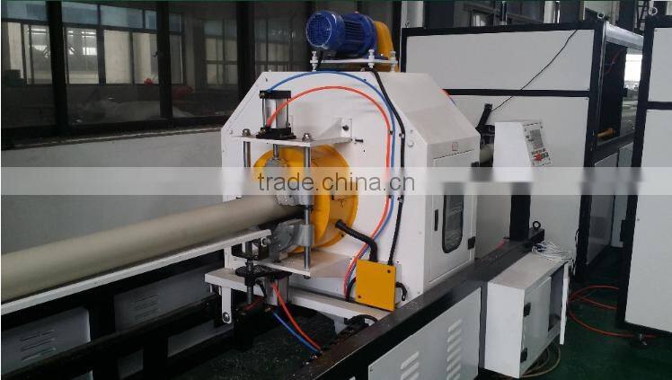 Φ12-Φ630,Φ710-Φ1000 series PVC pipe extrusion line is mainly used in the manufacture of plastic PVC pipes with various diameters and wall thickness used in the industries such as agricultural and constructional plumbing, cable laying etc. This line is composed of conical twin-screw extruder, vacuum calibration tank, haul-off, cutter and stacker etc. The extruder and haul-off adopt imported AC frequency control device, vacuum pump and haul-off motors adopt high-quality products. The haul-off methods are two-claw, three-claw, four-claw, six-claw, eight-claw, ten-claw, twelve-claw etc. You may choose saw blade cutting type or planetary cutting type, It is additionally attached with length counter and intensifying device. This line with reliable performance and high production efficiency. Our company can also manufacture special pipe production lines, e.g. Spiral pipe and core foaming pipe according to your requirements.