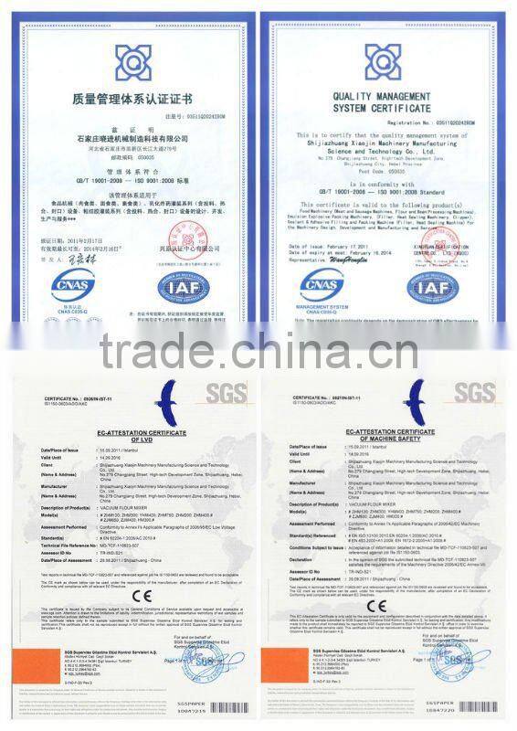 1. ZHM Vacuum Flour Mixer is composed of frame, body, vessel that can tilted 950, vessel lid, mechanical transportation, water circulated vacuum pump and the electric parts.