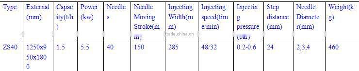 May inject whole chicken different kinds of meat with bones or without bones, beef, whole chicken, fish , injection pressure 0 to 10kg that range is adjustable.