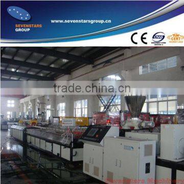 PVC Profile production line consist of conical twin screw extruder , vacuum shaping table , hauling machine ,cutter ,pilling