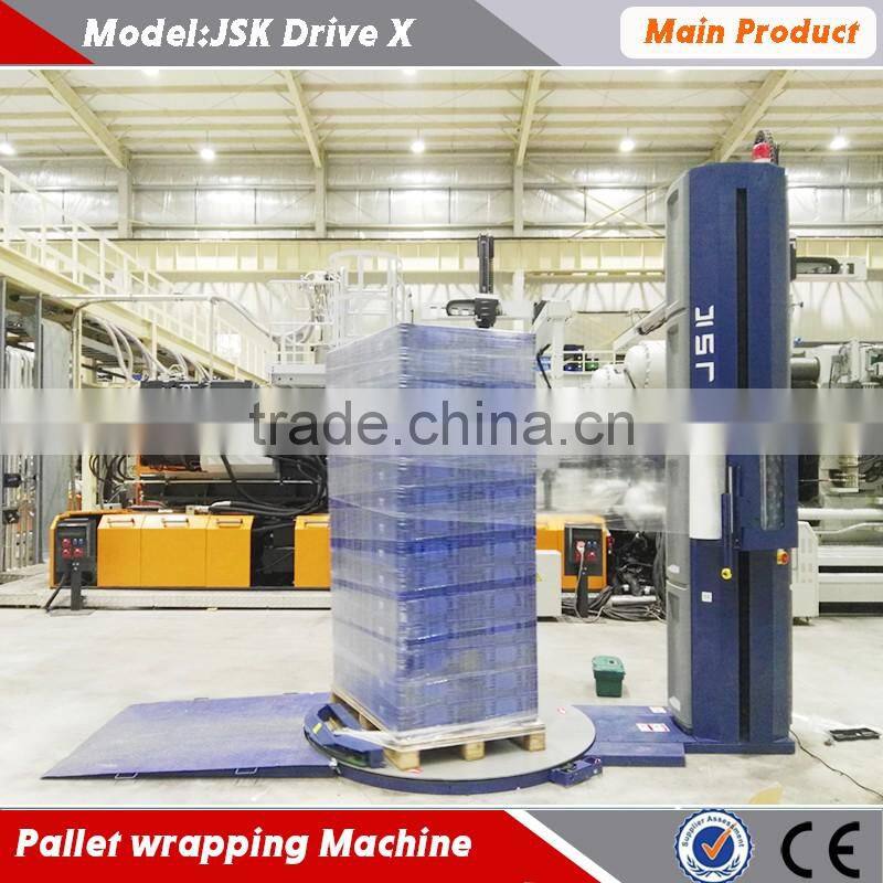 Fully automatic pallet wrapping machine.