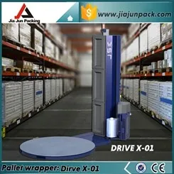 DriveX pallet wrapping machine ,worker just need put the pallet on the turntable and press remote control button,machine will wrap pallet automatically,during this time ,the worker no need get off the forklift truck and operate machine by hand .