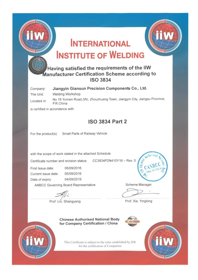 As a professional company specialized in providing overall solution of high quality precision components, Giansun has grown into one of the world’s leading supplies in the field of high-speed railway, welding,marine high-end equipment manufacturing and wind turbine by offering specialized serve to our clients all over the world.