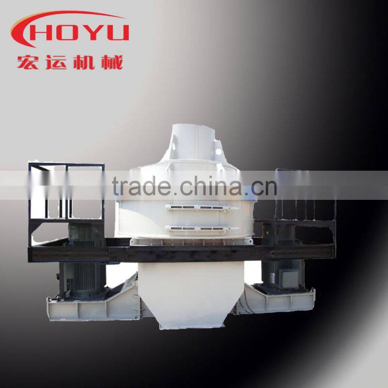 Sand making machine is the advanced crushing equipment developed by Hongyun Factory based on the present situation about sand making equipments’ application in our country. It is mainly composed of pedestal, holder, vortex crushing cavity, impeller, distributor, main shaft and other parts. Sand making machine is the indispensable fine devoice in the present sand production industry. Using the centrifugal force and impact force which are brought by itselves’ high speed running, the sand making machine can achieve crushing effect to satisfy the sand making industry’s demand of materials’ granularity and size. Besides be used in sand making industry, it can also used to crush harder ore material. It is an ideal crushing equipment which often be used in mineral processing, ore milling, metallurgy, chemical engineering, power industry, water resource industry and other different industries.