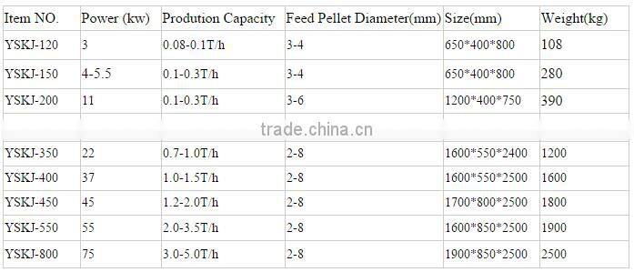 YSKJ serious Animal Feed Pellet Machine can be used for making livestock feed pellet ,such as sheep ,cattle ,horse ,deer etc.It also can be used for making soft wood pellet ,it adopts reducer transmission ,better than belt conveyor thansmisson .