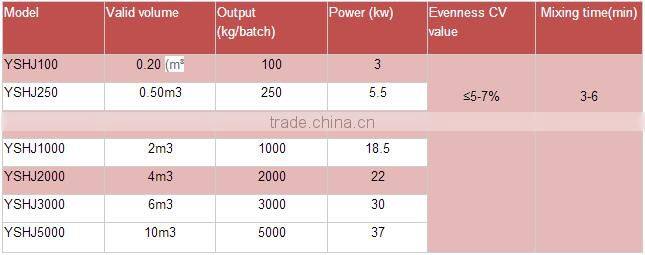 YSHJ series single shaft twin screw mixer is widely used in mixing the powder raw material in many industries,such as feed factory, breed aquatics factory, chemical factory, food factory and flour mill and so on. It can make the materials mix evenly and ensure the quality of the fodder.