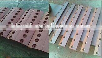 Pressing board of flying knife and pressing board of bottom knife, made from manganese steel, have 9 holes