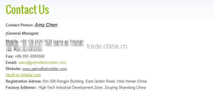 A: Yes, our users are in the industries of EFB made organic fertilizer, EFB gasification plant, EFB pellets & briquette plant, EFB power plant, Palm Oil Mill, long fiber manufacturers, etc.