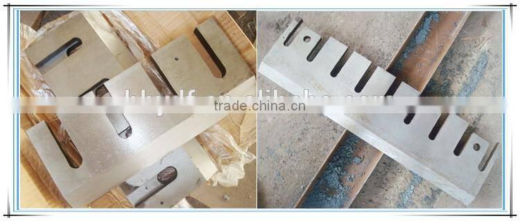 Pressing board of flying knife and pressing board of bottom knife, made from manganese steel, have 9 holes