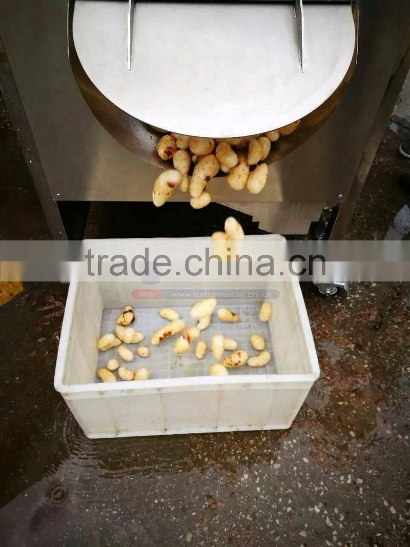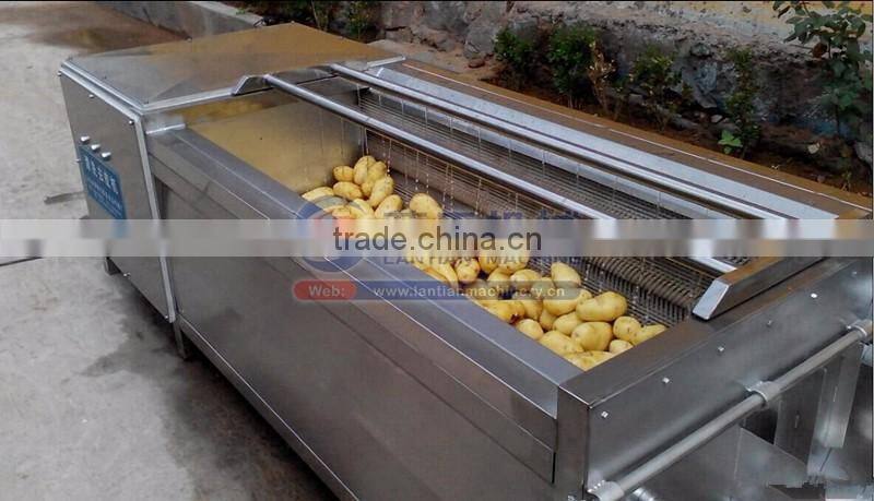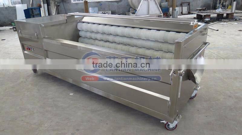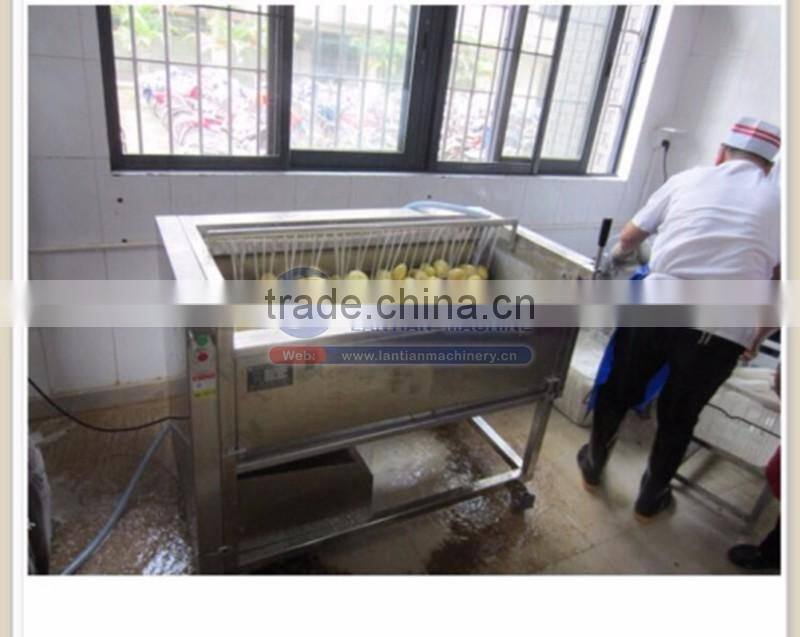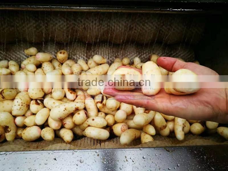 fruit processing machine adopts imported wavy hair roller bristle brush roller in combination with stainless steel design, can remove potatoes strong MAO taro root vegetables such as ball groove in mud and fur, than stainless steel peeler and ordinary peeling machine to silt cleaning effect is better.To adapt to the central kitchen, corporate canteens, and other root vegetables cleaning ball peeling pretreatment process.