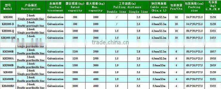 Manufacturing 4T Manual Chimney Puller With Double Gear Triple Hook