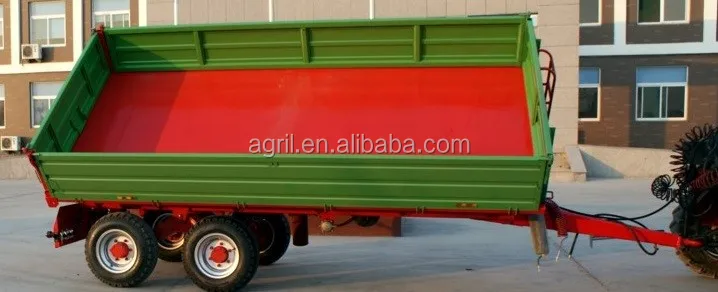 agriculture uses tipping trailer, uses the hydraulic pressure dumping mechanism to get up lifts a box load to be bigger than 2 ton, the angle is bigger than 45 º about, has the both sides to pour out the function. The barometric pressure braking system, applies the brake safely reliable. The steel plate springs absorption of shock, has the big latent load ability and the fine absorption of shock performance, is suitable each kind of road surface the travel condition. The compartment board uses the deep ripple structure, had prevented effectively under compartment board heavy load crosswise “drum stomach” metamorphism, and lengthened the compartment service life. This trailer loading end is low, the structure reasonable, the travel steady, the loading convenient, the outlook is artistic, the economy is durable, the use work environment is widespread, the unloading efficiency is high