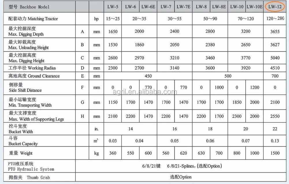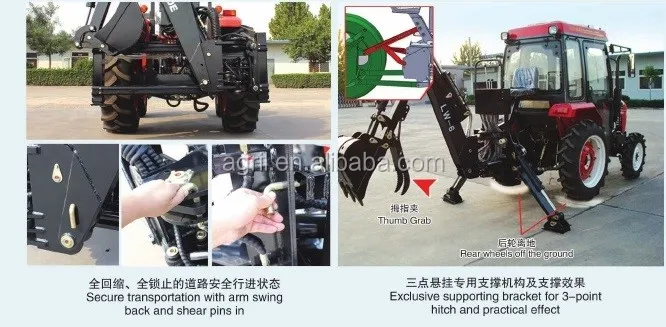 hot sail biggest huge type tractor PTO use hydraulic 180 degree swing back hoe back digger excavator Lw-12 with CE certification