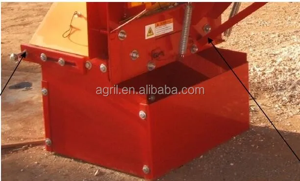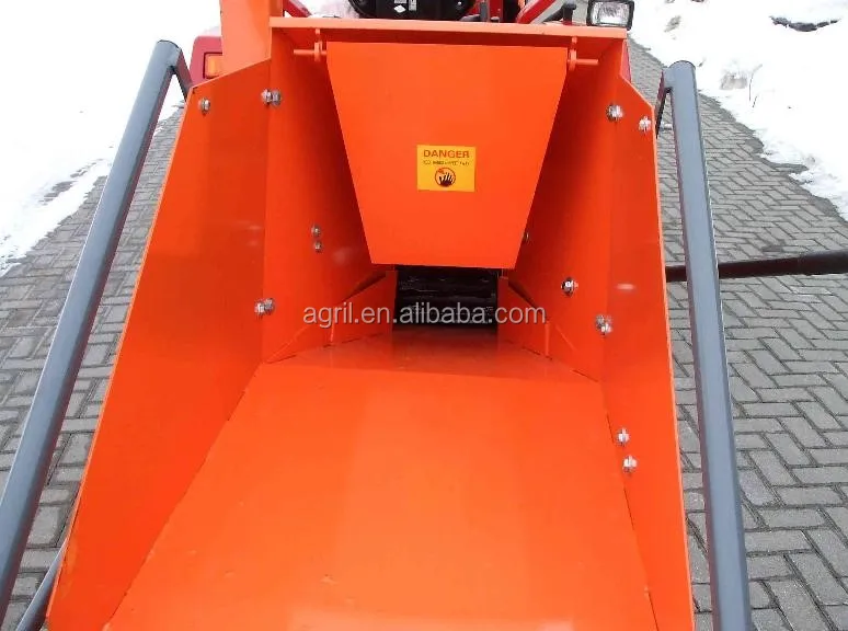 thus you only need a tractor, with at least 18hp, which is driven by the PTO. The solid metal feed roller can be easily stopped by a hand lever. The large hopper allows the expanded introduction of voluminous branch material.