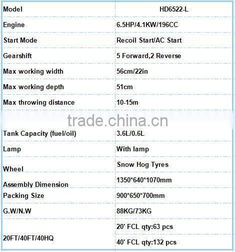 Gasoline 6.5HP Snow Thrower/ Gasoline Snow Blower With LED Light