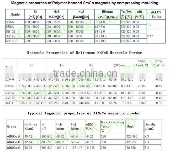 1.We can supply you all kinds of magnetic powders: Ferrite, AlNiCo, Ndfeb and SmCo Magnetic powders.