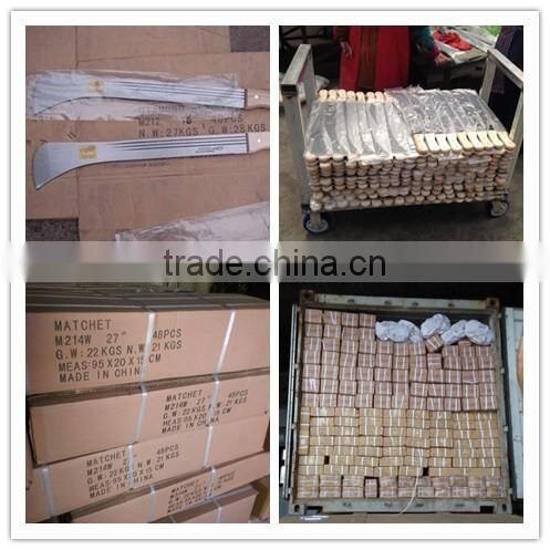 The products of machets are made of good quality 50Mn,65Mn steel or railway steel.Through the process of heat-treating,lacquer-coating,polishing,anti-rusting and strictly inspecting,it is capable to provide with proper hardness and thickness,fineness,sharpness and toughness.
