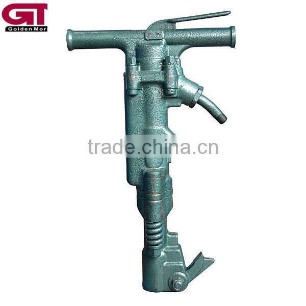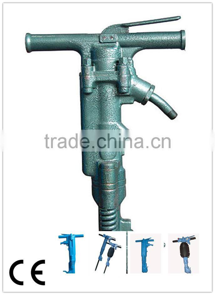The paving breaker model B47 is tools with compressed air as its power. The compressed air is distributed alternatively through the distributing valve into either end of the cylinder assembly so that the hammer inside is made to carry on a reciprocal motion which impacts the shank of the steel chisel by the tappet drives the chisel into the concrete foundation and makes them split into huge pieces.