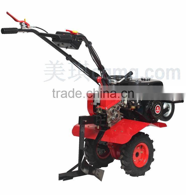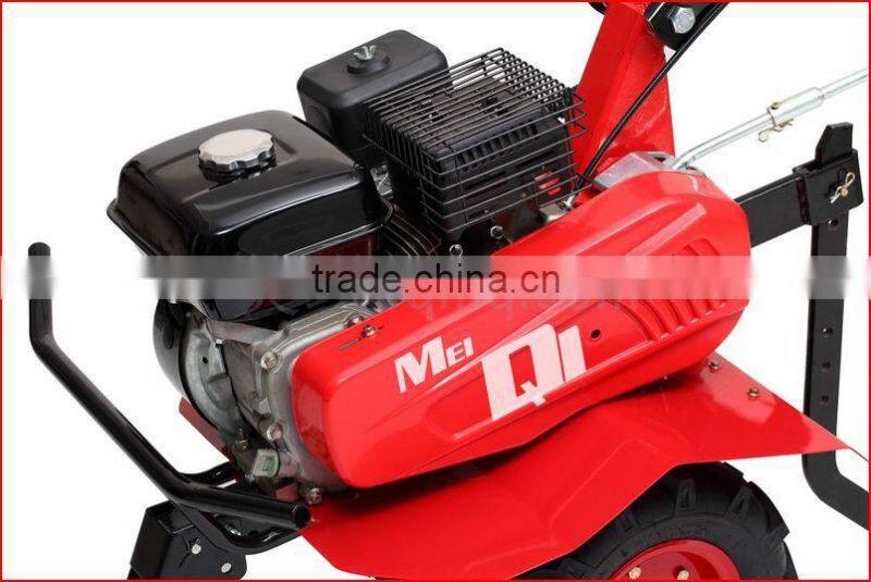 4. Features: Selection 6-9 horsepower air-cooled gasoline engine, a simple, low fuel consumption, high efficiency characteristics, Rotary drylands 0.05-1.10 hectares per hour, vegetable 0.10-0.22 hectares, coupled with different equipment can Rotary plowing, furrowing. Widely used in a variety of operational requirements mountains, hills, plains of dry land, paddy fields, orchards, vegetable plots, greenhouses, etc., the majority of farm families the best and most suitable machine.Lightweight, flexible, easy to control, with front road wheels can be easily transferred in the case of loading of the tool, available for free to adjust the armrest height, long working fatigue, accompanied by the appropriate accessory can do many terrain farming needs.