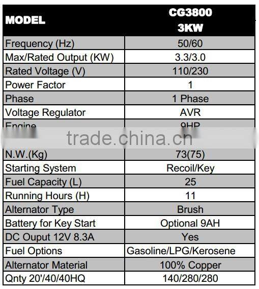 3000W/3KW Gasoline Mini Electric Generator PriceUS$ 220 - 420MOQ: 10 Pieces