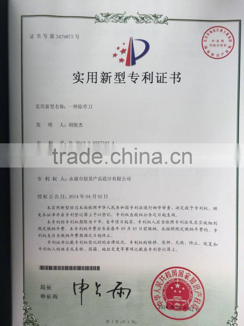 Our products are certified by CE,and Company's design and production of weeding knife has applied for a patent.Q: Are you trading company or manufacturer ?