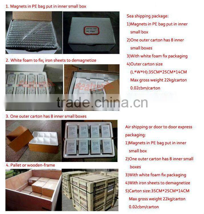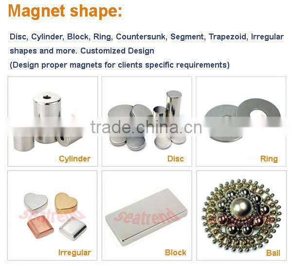 2.Shape: Disc, Cylinder, Block, Ring, Countersunk, Segment, Trapezoid, Irregular shapes and more. Customized Design (Design proper magnets for clients specific requirements)