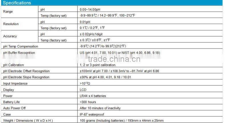 1. Large display screen- displays pH and temperature at the same time.