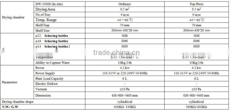 DW-50ND High Quality Top-Press In-situ (Electric Heating) Freeze Dryer With Shelf Temperature Adjustable
