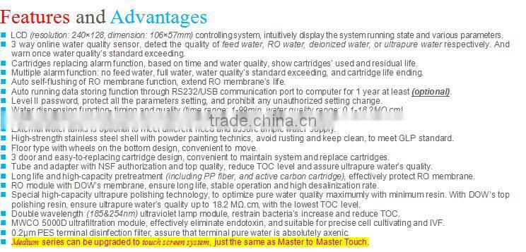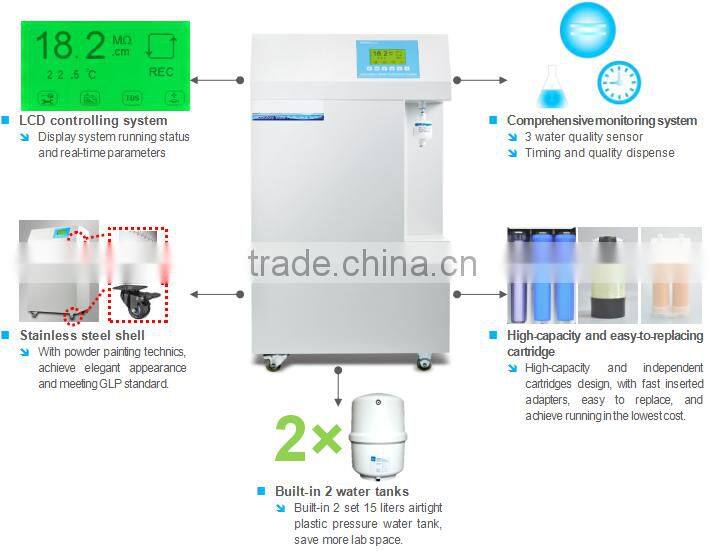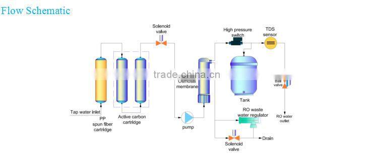 Standard configuration | Main body (Including 1 set of cartridge)+2 set built-in 15 liters pressure tank+ TDS/conductivity test pen | |||