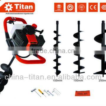 A TT-GD520 high-performance one-man New Model 52CC EARTH AUGER with CE,GS,EU2,EMC is the choice of home users, semi-professionals and jobbers alike. Equipped with the easy-start system, gear reduction system, advanced vibration dampening system, the difference sized interchangeable augers and throttle control system, the machine is suitable for any application, whether it be digging holes for fence posts, deck supports, retaining walls, plumbing, planting trees or general construstion.