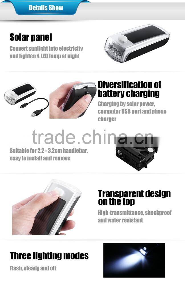 4-LED Solar Bike Head Light Front Torch Lamp Outdoor Equipment Front Reer Handlebar Bicycle Light Bicycle Accessories
