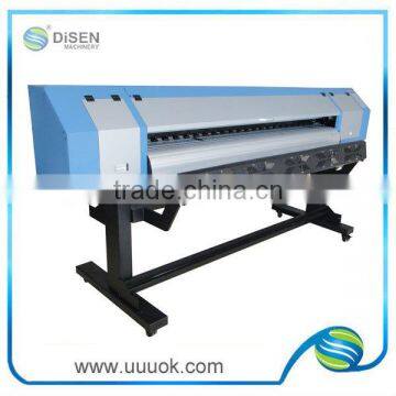 1.8m eco solvent printer price Low temperatures how to prevent the ink block the photo machine heads Temperature decreases to a certain value, the ink off, plug the peak period will emerge. According to the crown Figure piezoelectric photo machine agents, this is because water is the main component of the ink, the ink in the process of transportation, the ink will freeze. The ink is a complex solution, the temperature of this composite solution viscosity has a great influence, so that it appears the ink at low temperatures, the viscosity of the ink increases, commonly referred to as the ink becomes fused . " The ink viscosity increase the most direct impact on the flow of the ink in the pipeline, resulting in ink off Mexico. Viscosity changes and indirect effects of the ink surface tension, the surface tension of the liquid is a liquid internal molecular attraction between the molecules of the liquid surface, when the viscosity increases when the molecules and between molecules withstand the shear force increases, so also indirectly affect the surface tension of the liquid. The ink droplets instantly leave Motou, if the tension is too large, the ink droplets on not ejected, also drop stranded in the surface of the nozzle, resulting in a non-particles clog. The other features of the complex solution at low temperatures, the solubility of the complex solution is relatively low, there is often a certain solute precipitates. If the ink precipitation, precipitation substances can also cause the ink sac, Motou plug. Appears above circumstances the most direct factor is the temperature, the temperature is too low to affect the adhesion between the ink and media. Increase the indoor temperature is of crucial importance for the stability of the ink in the printing process. Piezoelectric inkjet printer and inkjet difference in what? Although the same as advertising printing equipment, piezoelectric inkjet printer and inkjet printers are not exactly the same, both or there is a difference.According to the piezoelectric inkjet printer agents, piezoelectric inkjet printer and inkjet printers main difference between the performance in five areas. 1, format: large format inkjet printers are usually 3.2 meters; small format inkjet printer, typically 1.52 m.