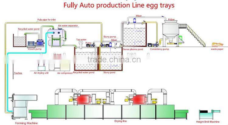 This egg tray production line’ s drying way could be civil drying way and steel multi-layers drying way. These two drying ways have been patented approved in China. The total consumption is 40% lower than the other factories’. It is a big step in pulp molding industry.
