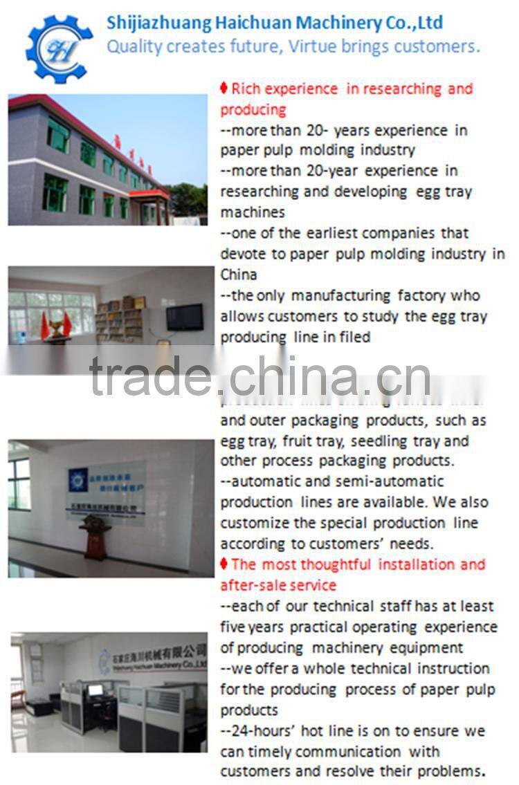 We are the professional egg tray machine manufacture which is engage in research and development ,we are located in Shijiazhuang city Hebei province in China,we are the one of the most famous egg tray machinery manufacture in hebei,we begin our business in 1996,our egg tray machinery sell to all over the world,we produce the egg tray machine as following