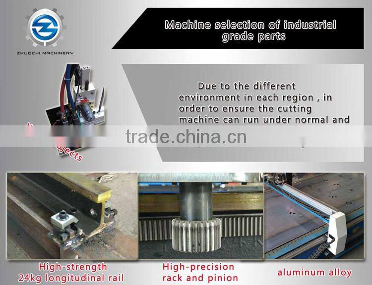 Zhuochi portable CNC cutting machine with unilateral drive,High strength aluminum alloy longitudinal rail and cross arm ,Compact form factor plus light weight,so run stable、cutting accuracy、cutting gap forming good。each machine can use flame cutting and plasma cutting two cutting ways,cutting width is 1500mm,according to customer requirement ,we can be able to make length
