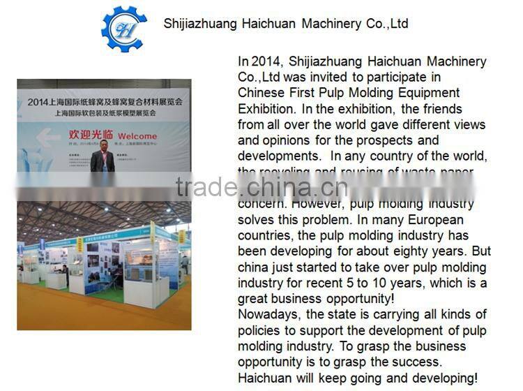 Pulp molding industry is a typical representative of green packaging industry with features of small investment, low cost, high efficiency, and environmental protection and other advantages. Haichuan Machinery has participated in pulp molding machinery exhibitions many times, and exchanged experiences with our peers and customers from home and abroad. learning essence of this industry to produce the more energy-efficient and better- quality pulp molding machines.