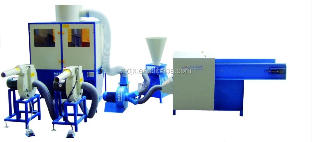 Working principle: the use of loose cotton feeding machine of carding, sponge sponge scrap crushing, mixing by feeding the fan into the mixing distribution box, and then through the mixed filling filling machine.